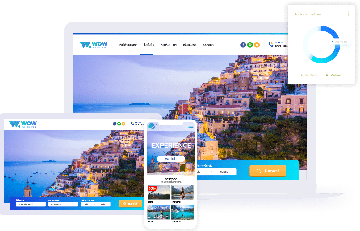 ตั้งแต่ค้นหาลูกค้าเพื่อขายแพ็คเกจทัวร์ ยิงโฆษณาใส่ ไปจนถึงสั่งซื้อทัวร์ ทั้งหมดเกิดบน “เว็บไซต์ทัวร์ ของ WOW” ได้ในที่เดียว