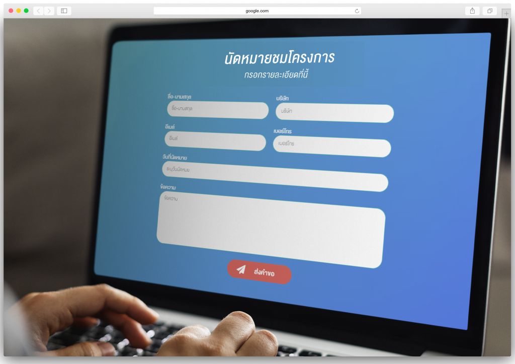 ลูกค้ากรอกข้อมูลนัดหมายเข้าชมโครงการได้จากหน้าเว็บ ระบบแจ้งผลถึงฝ่ายขายทันที ตอบลูกค้าทันใจ ไม่พลาดโอกาสการขาย 100%