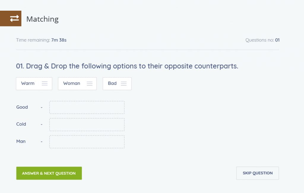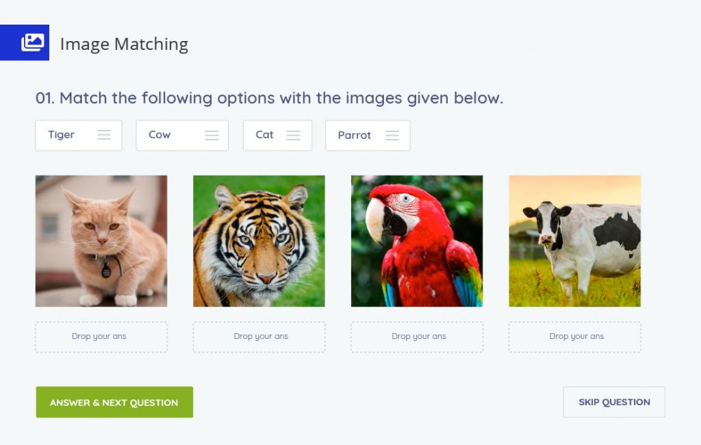 ผู้ทำแบบทดสอบสามารถลาก วาง และจับคู่กับภาพ