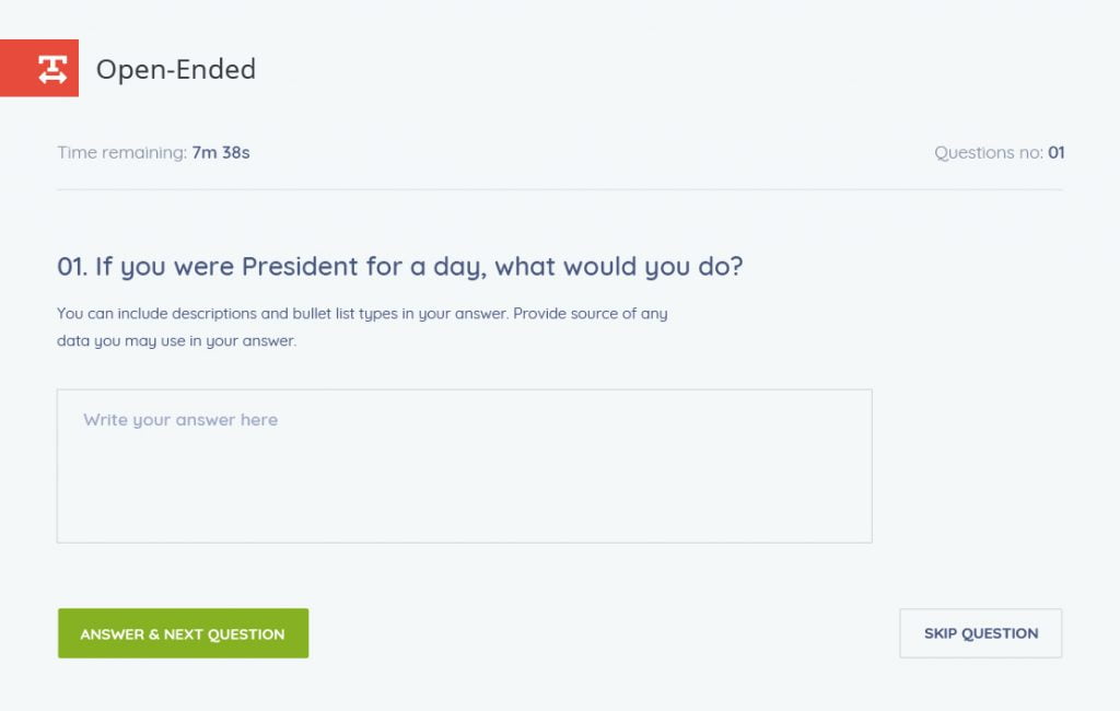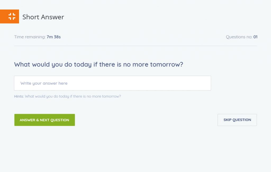 ผู้ทดสอบต้องสรุปคำตอบอย่างสั้น ในจำนวนคำ ตัวอักษร