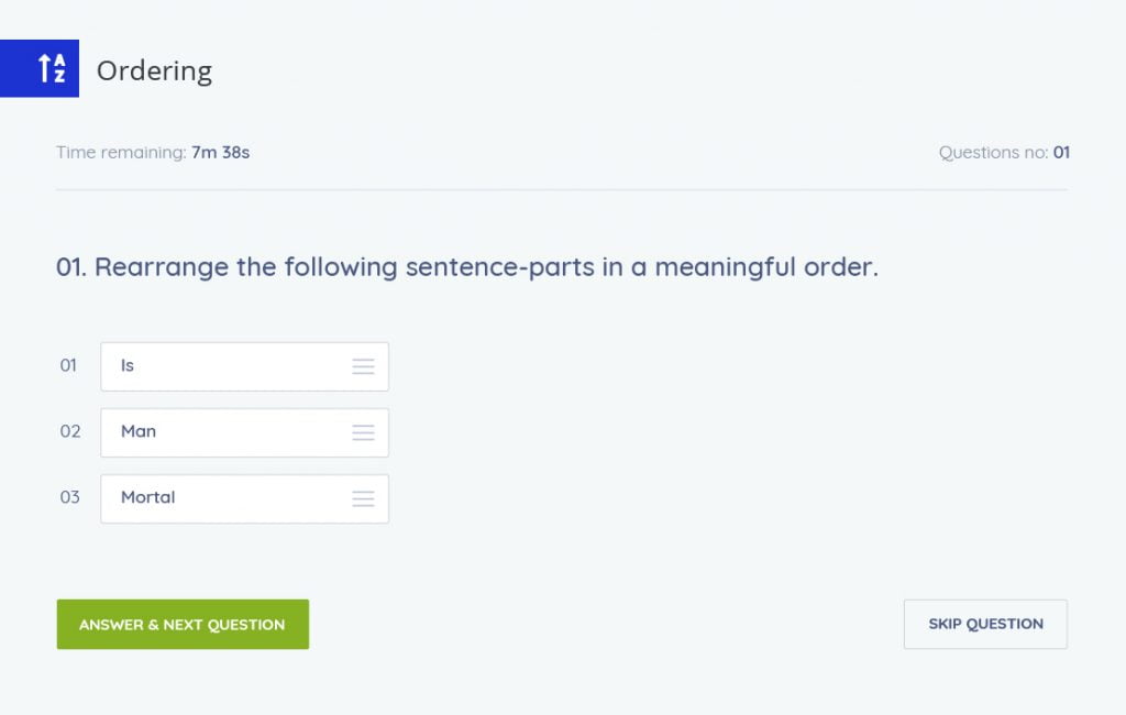 ให้ผู้ทดสอบ ลากคำตอบที่ถูกต้อง และวางไว้ในลำดับที่ถูกต้อง