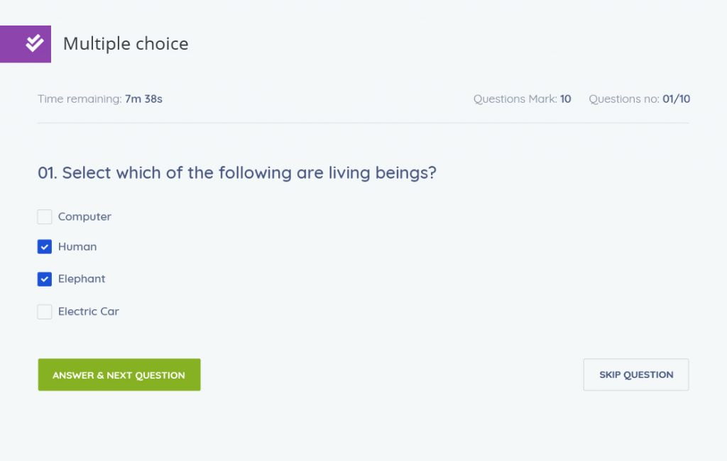 ให้ผู้ทดสอบสามารถเลือกคำตอบได้หลายตัวเลือก