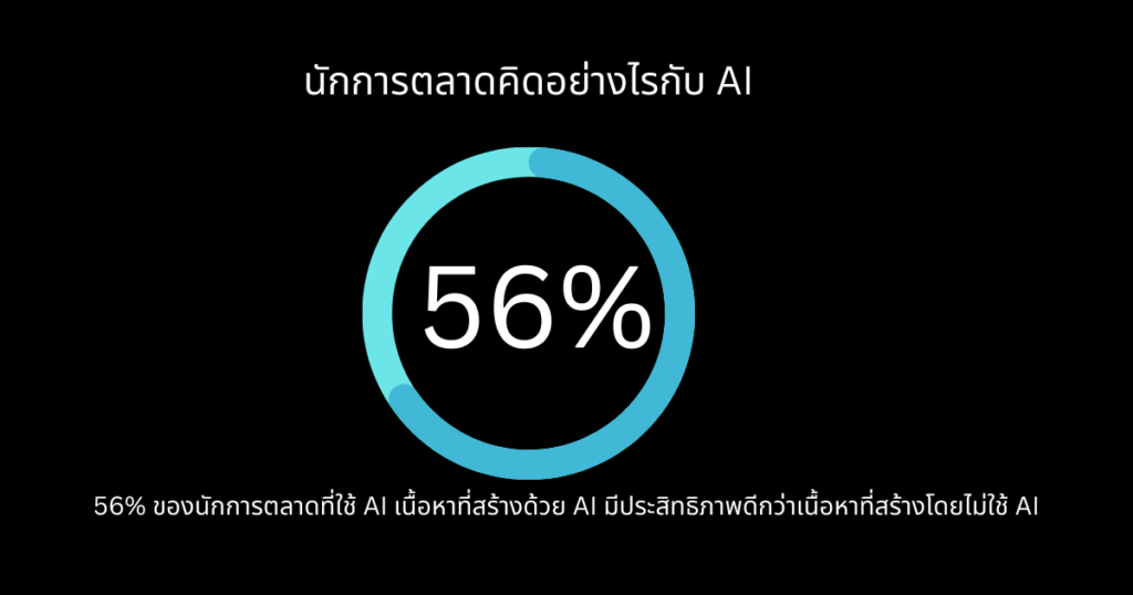 1. 56% ของนักการตลาดที่ใช้ AI สำหรับการสร้างเนื้อหากล่าวว่าเนื้อหาที่สร้างด้วย AI มีประสิทธิภาพดีกว่าเนื้อหาที่สร้างโดยไม่ใช้ AI
