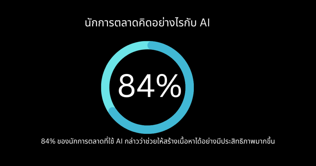 1. 84% ของนักการตลาดที่ใช้ AI กล่าวว่าช่วยให้สร้างเนื้อหาได้อย่างมีประสิทธิภาพมากขึ้น